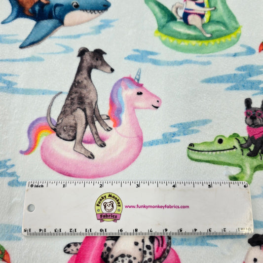 Coordinating Colors: Aquarius, Dark Sea, Powder, Fuchsia, Cerise, Snow, Coffee, Black Pool Paw-tay Digital Cuddle® plush minky fabric illustrates a playful design of quirky dogs soaking up the sun on cute pool floaties. Printed digitally on a 2.5mm pile fabric, the ultra-soft, smooth fabric texture of Cuddle® minky is perfect for quilts,...