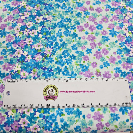 Sweet, classic, and endlessly versatile — this fabric by Fabric Traditions is a timeless staple for any fabric stash. Delicate floral motifs in soft blue tones make this calico a go-to for quilts, apparel, and home accents that feel both fresh and familiar. Picture a patchwork quilt with this blue calico...