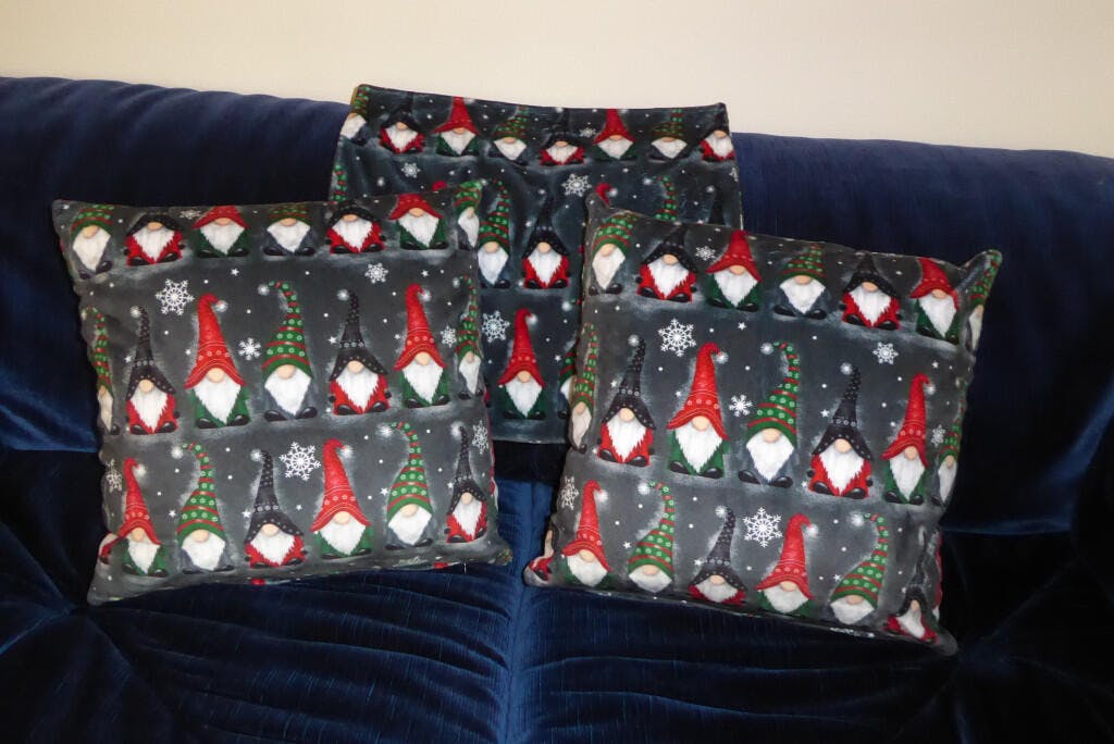 Bought a yard of Shannon Fabrics Ash Gnome Minky in Feb. 2023. Never got around to sewing it before that Christmas. Finally made some zippered 18x18 toss pillows for this year. Really a cute pattern, I like the Ash colour. Soft, smooth Minky. The design is great for pillows. Would buy this again.