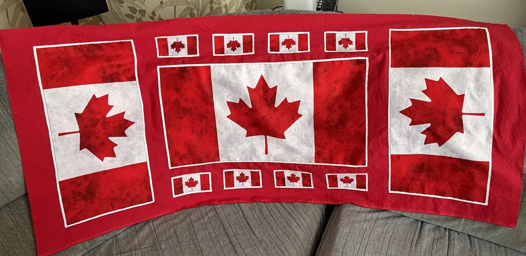 I cut out the flags and used most of them to create a ‘Canada Proud’ Table Runner.