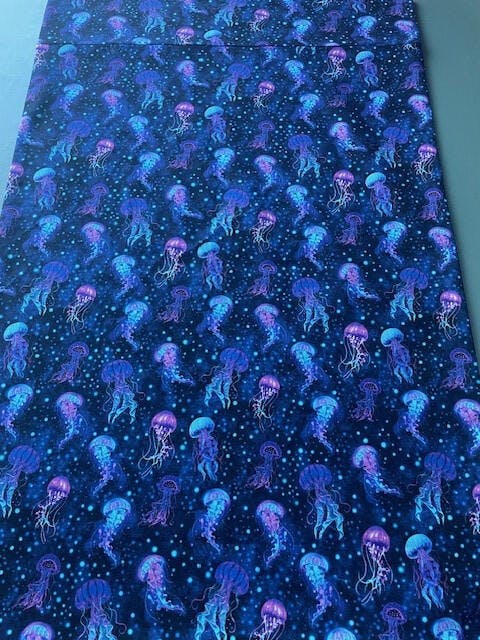 Picked this up to make another pillowcase for grandson. This fabric is fantastic, Timeless Treasures never disappoints. The print is fabulous, the colours so vibrant. I almost thought it was going to be a glow in the dark, but isn't, but boy if it was it would be so cool. Love it. Would make a pretty baby blanket front, with Shannon Minky backing. Just a thought !