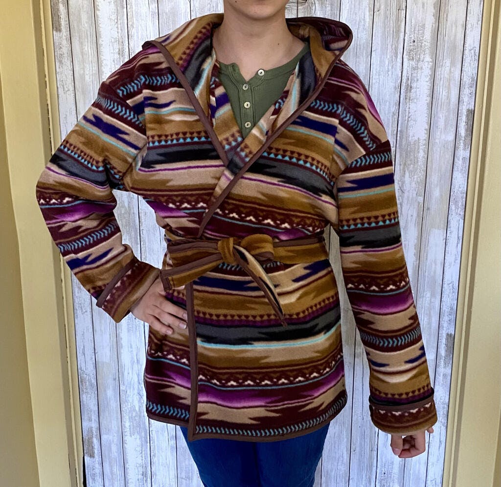 From the moment I seen this fabric on Facebook, I knew I wanted to make something with it. After watching some tiktok jacket patterns, I found one to make and it turned out wonderfully! First time making a sweater coat. The fabric is soft and vibrant!