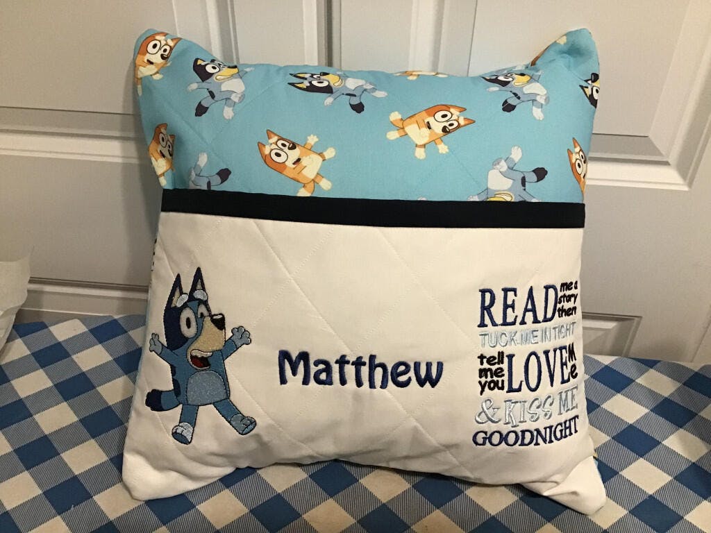 Loving this bluey cotton fabric for a special pillow