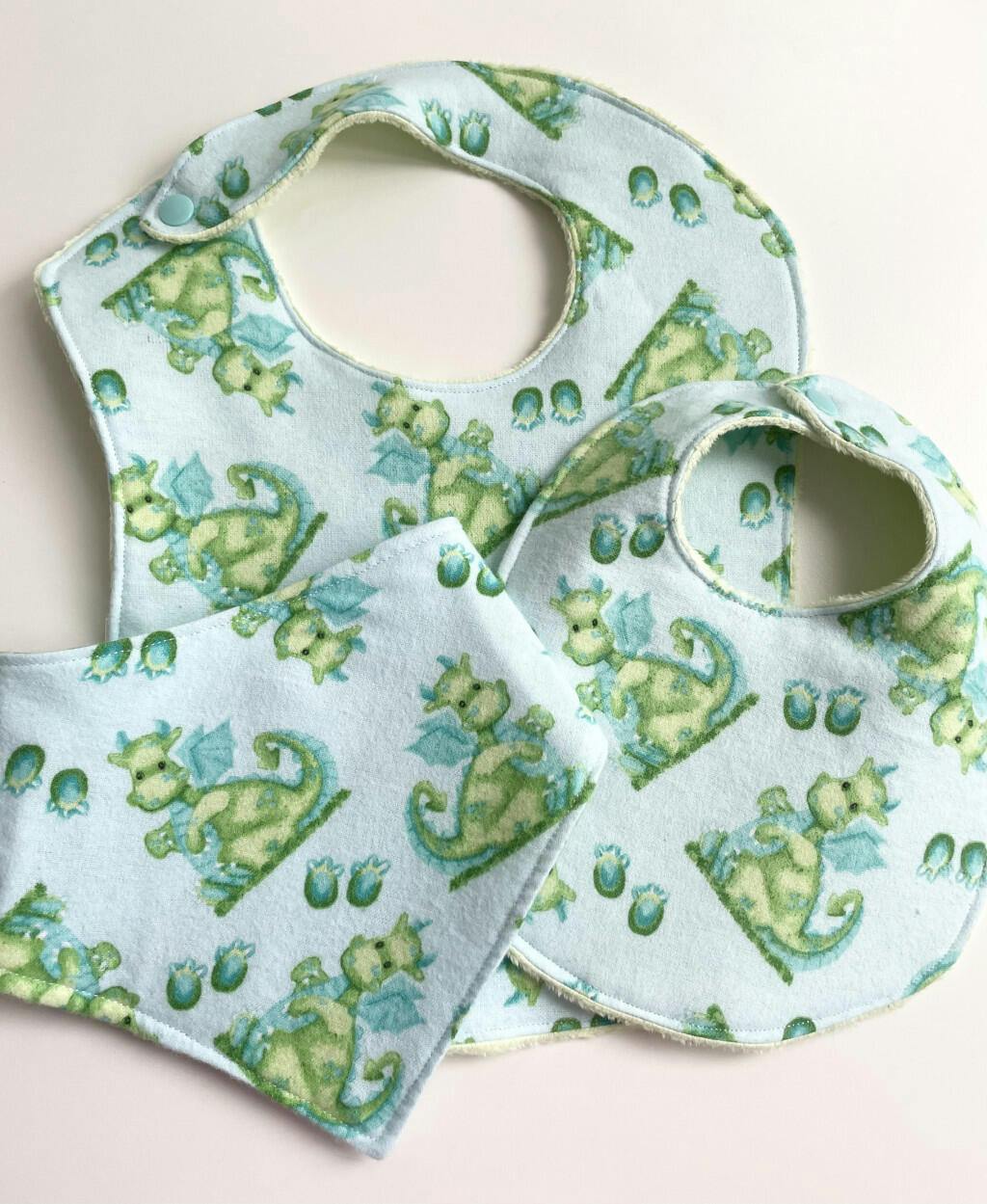 Only dragon fabric I could find in canada for a baby! Made three grow with me bibs! Customer was super happy! Thanks Melissa!