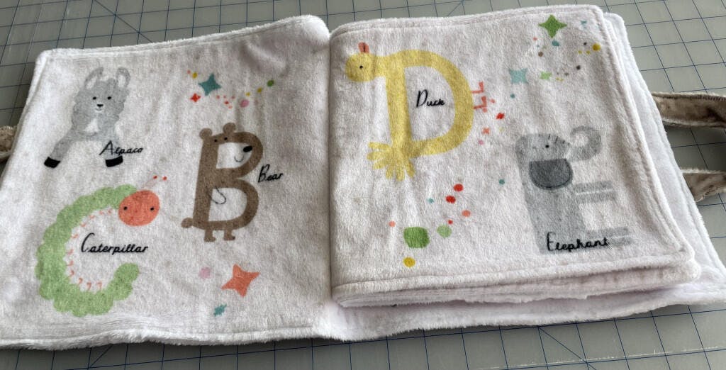 Learning the alphabet just got a whole lot cozier! This soft book is laid out on a digitally printed panel with all the page numbers and instructions to complete the Animal Alphabet Book. Fast and easy from start to finish, it will make a great gift for a new mom as she prepares to teach baby all about the animals and their corresponding letters. Flip through the pages made of soft Cuddle® minky that take baby on journey, discovering that A is Alpaca, B is for Bear, C is for Caterpillar, D is for Duck…and so on. Create something special with this adorable animal alphabet printed panel.