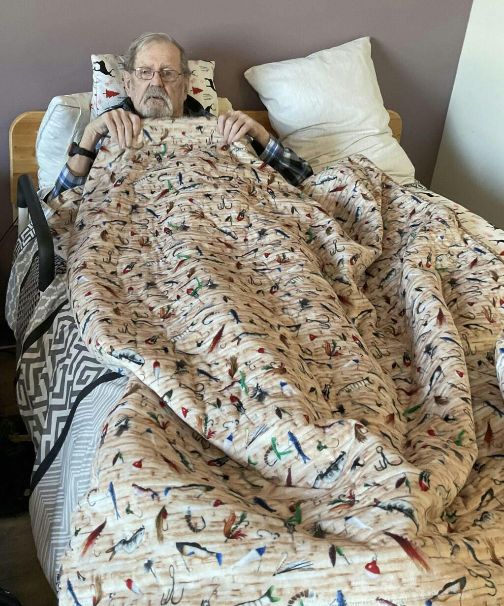 I used this fabric for a blanket for my dad who is always cold. Well he loves it! He used to fish a lot and loves this pattern. The backing is a brown fawn minky which is so soft and warm.