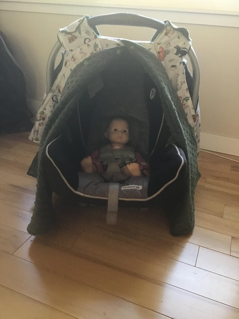 My customer paired this print with Hunter minky for her car seat canopy. It ended up absolutely beautiful.