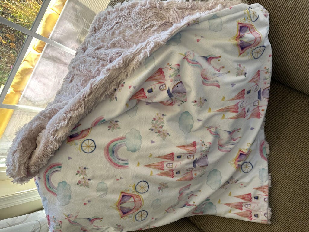 Beautiful! You've simply made an absolutely beautiful blanket Janice! I love those prints together, the Blush Fairy Tale and the Ice Pink Glacier....they're perfect! Thanks so very much for sharing your snuggly blanket Janice, we really appreciate the picture!