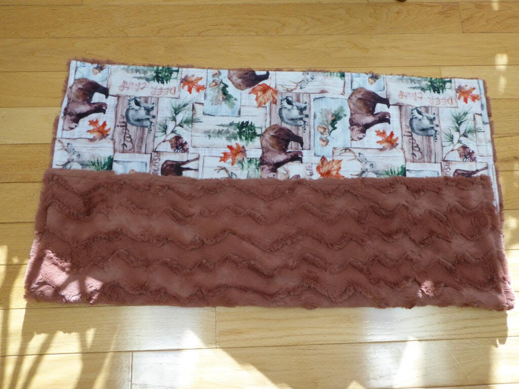 I purchased one of your 30x36 bundles. I love this bear/moose print! It is so cute. You paired it with the glacier (I think) in cedarwood ( I think). I have never worked with glacier. It is just like the hide. So soft, colour is really pretty. This print though, adorable! As usual Shannon has the best Minky, and some of the prints are so cute. Will only use Shannon Fabrics Minky.
