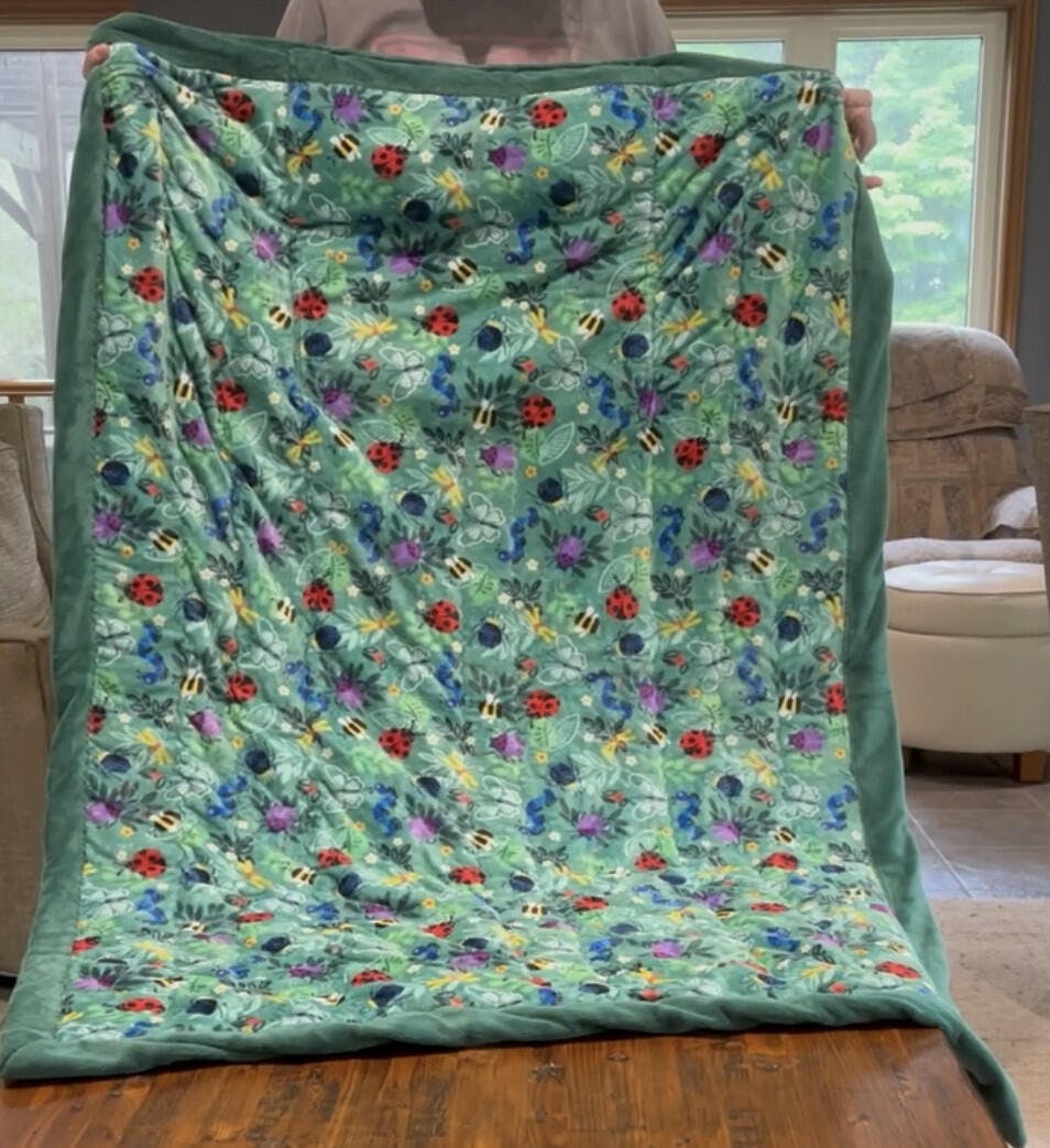 Here’s my newbie quilter attempt at a self binding quillow. My pics are too big to upload but chose the emerald backing for this one and it turned out so cute! Love the vibrant colours in this fabric.