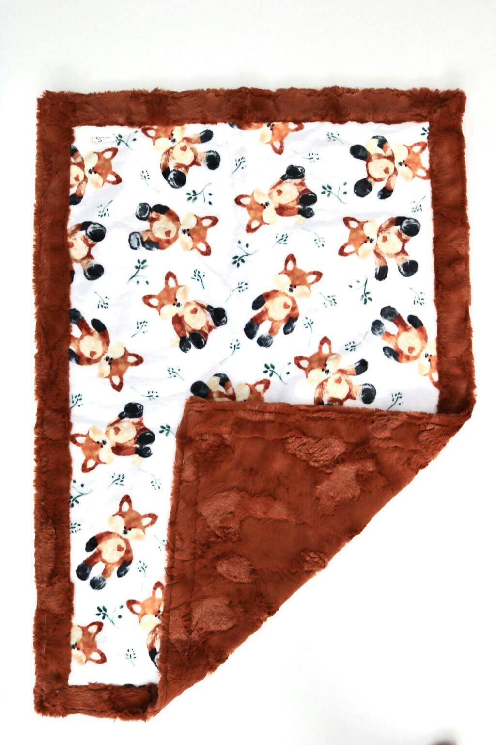 This fabric is super soft and the foxes are adorable. I've used it for several baby blankets and they have all been adorable, shown paired with charcoal minky dimple!
