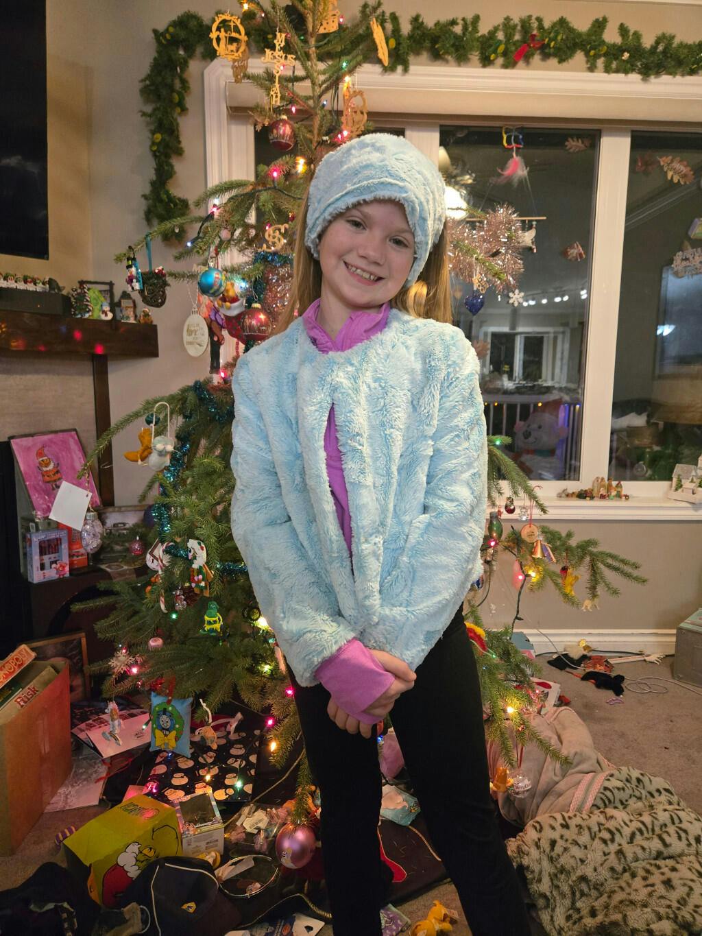 I made a lined jacket & headband for my granddaughter for Christmas. This was such a beautiful fabric in color, softness & to sew. She loved them.l
